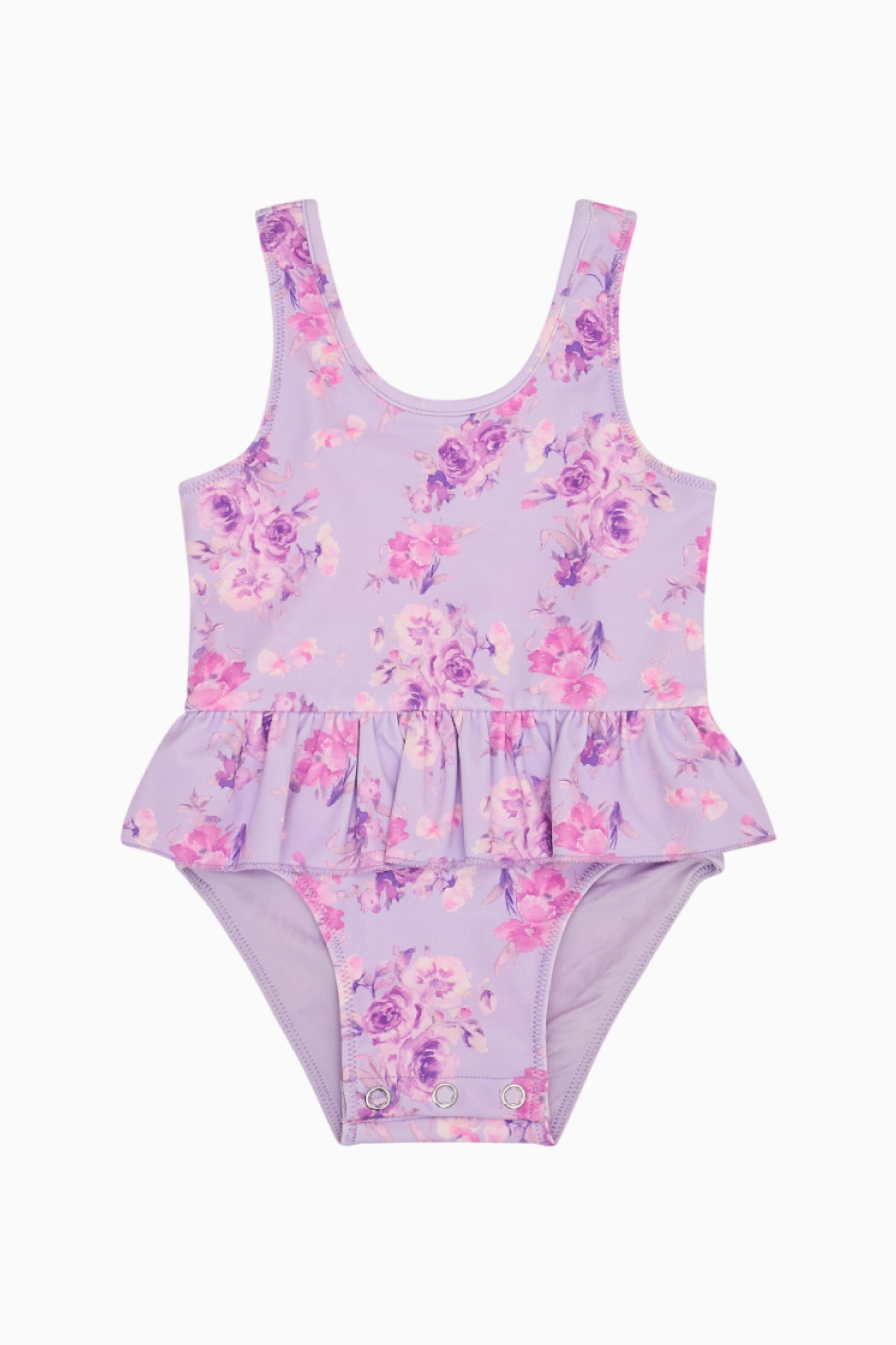 Our little loves are extra cute in the Tamia Baby Swimsuit. This easy swimsuit is designed for comfort featuring a pretty floral print, high coverage, and a sweet ruffle detailing.