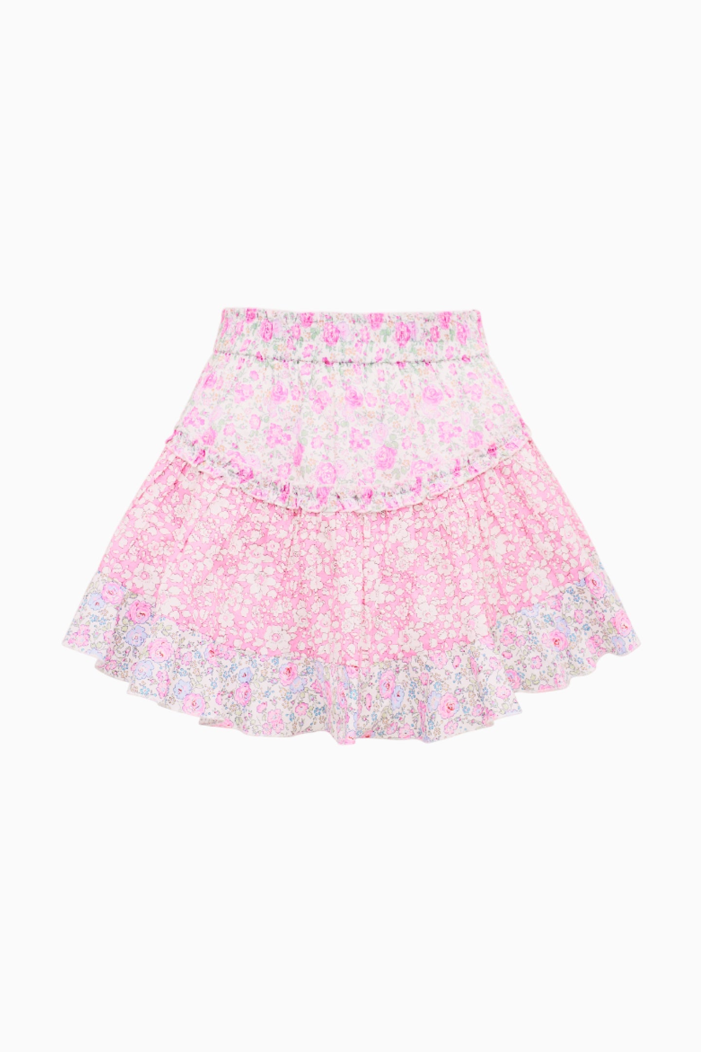 Introducing our latest capsule collection Made with Liberty Fabrics designed into our favorite elevated pieces. The Bardon Skirt returns in Liberty's Tana Lawn™ cotton fabric with a two-toned mixed floral print all over. Easy and dreamy, the mini features an elasticated waistband, top-applied ruffle details around the hip and slight hiking at the side seam for a flirty finish and silhouette.