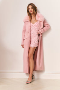 Char Faux Fur Collar Wool Coat - ORCHID ROSE
