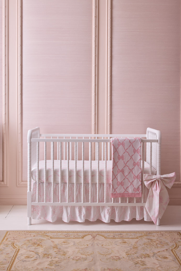 Our little loves cribs are extra cozy and cute with our new crib sheets featuring our iconic baby bow print. Debuting with our new high-quality, ultra-cozy and comfortable bedding fabric, the fitted sheet is extra soft, breathable, and durable – ideal for our littles getting their beauty rest.
