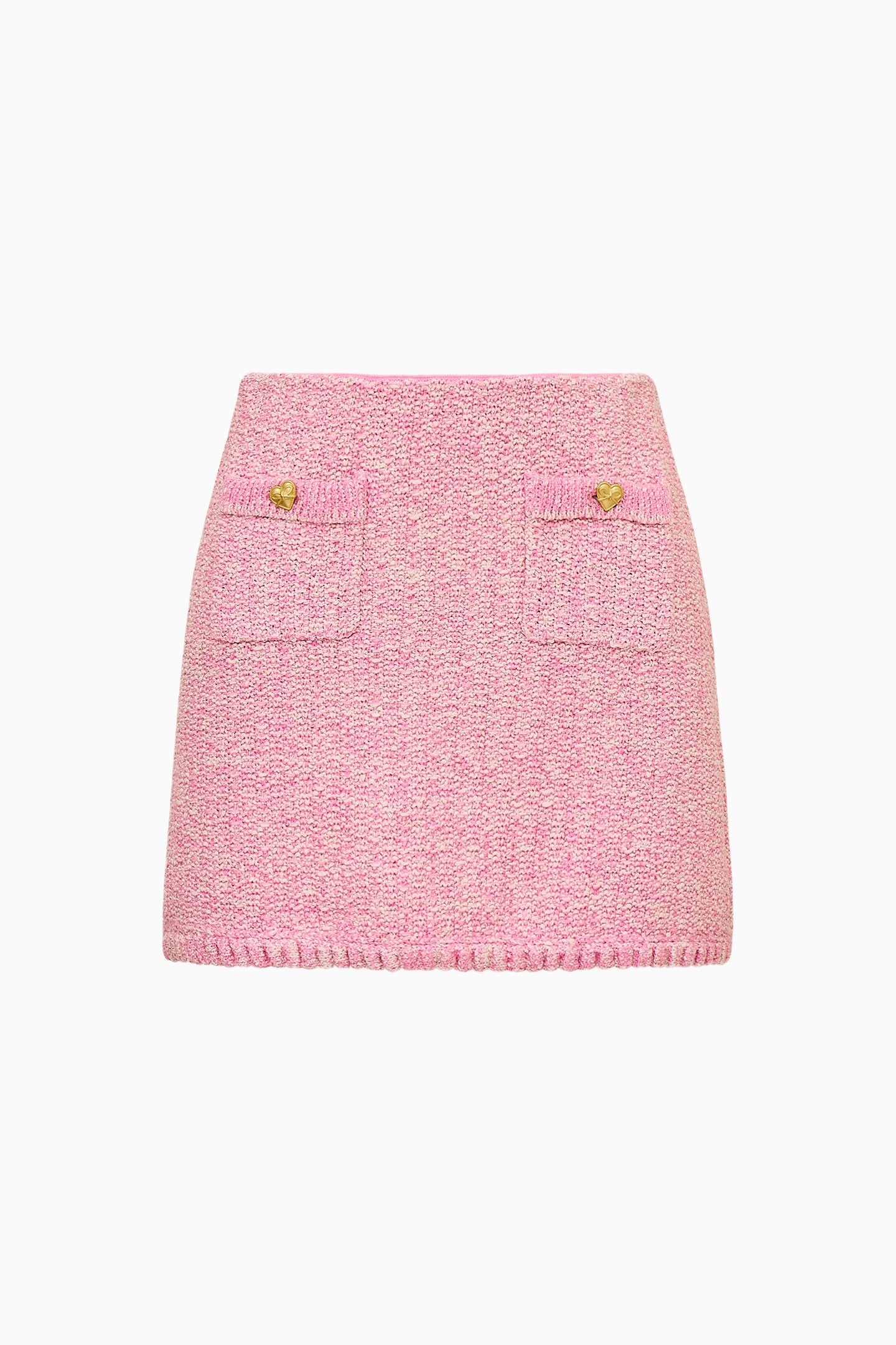 The Ellianna Skirt makes its debut for the autumn season. Crafted in a soft white-and-pink melange tweed with subtle lurex shimmer, this slim-fit, A-line silhouette features an elastic waistband for comfort, two functional pockets, and a flattering shape that pairs perfectly with the Delcie Cardigan. Romantic, polished, and endlessly wearable—your new favorite set just got even sweeter.