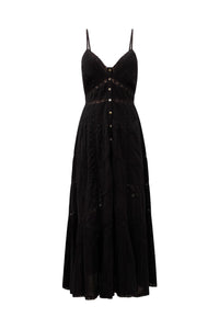 Our Esilda Dress returns as part of our Upcycled Icons Collection, a limited-edition, sustainable capsule featuring our best-selling silhouettes made from remnant LoveShackFancy fabrics. The piece begins with spaghetti straps above a v-neckline that sits above a fitted waist yoke that descends to a center front placket with buttons. This piece has a smoked back for easy and comfortable wear.