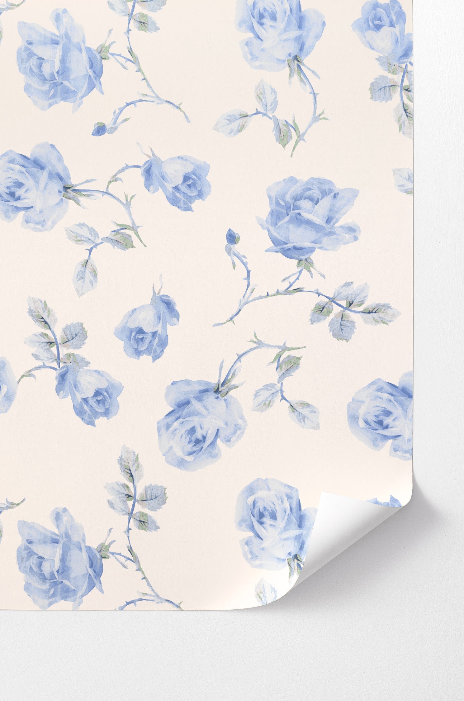 French Blue Ribbon Rosa Peel and Stick Wallpaper