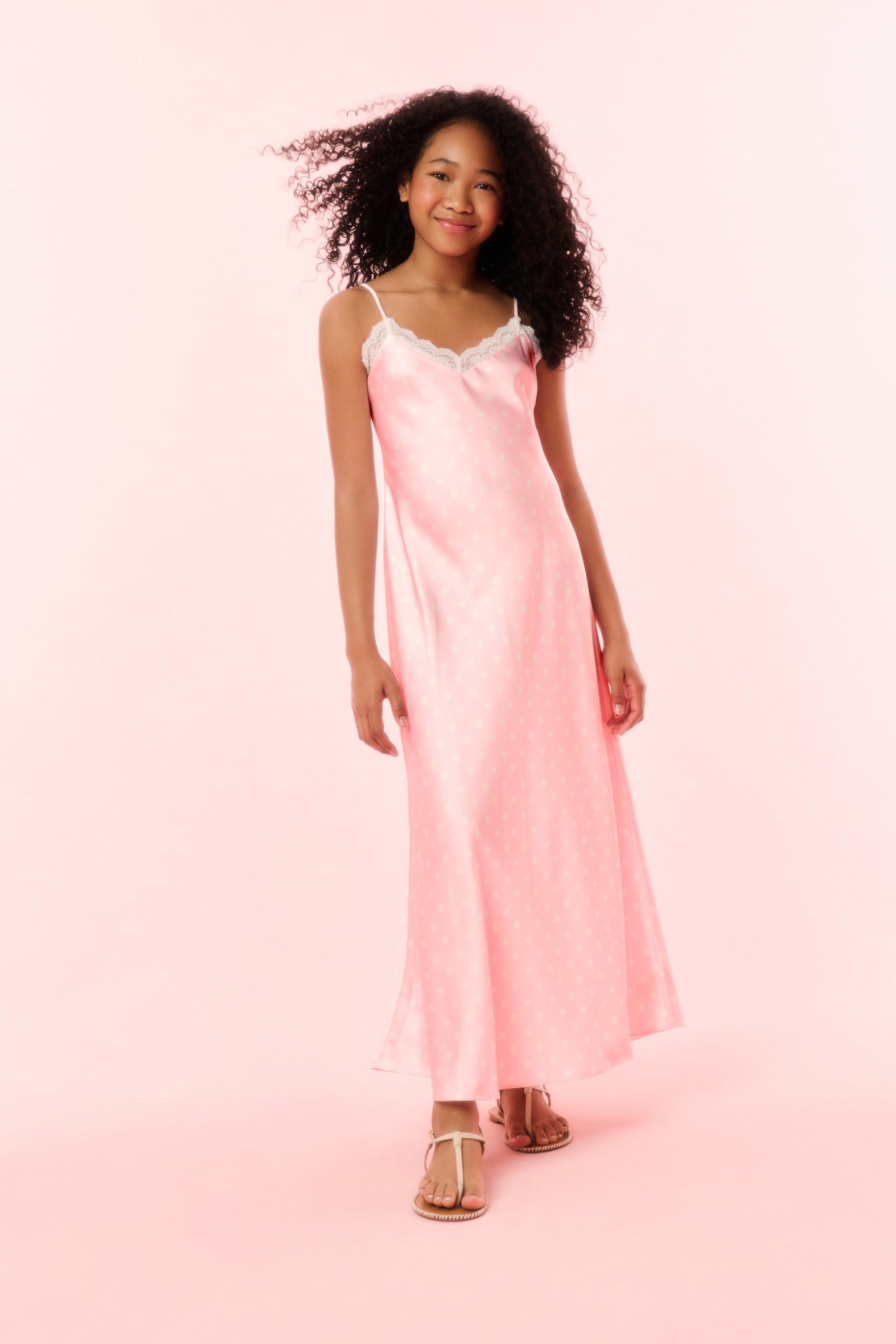 Our girls are pretty in pink in the Adelise Dress. This cute piece arrives with a polkadot print all over and an ever-flowing silhouette. Easy and breezy, ideal for the warm weather season.