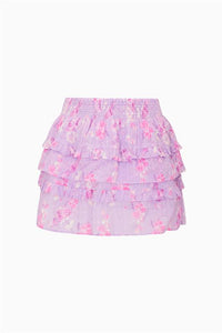 Our beloved Billie Skirt returns in a chiffon fabric with our Endless Dream and Forever in Love fragrance print and custom-lace embroidered tassels. Below a wide smocked waistband, the skirt falls to two shirred tiers with ruffle details.