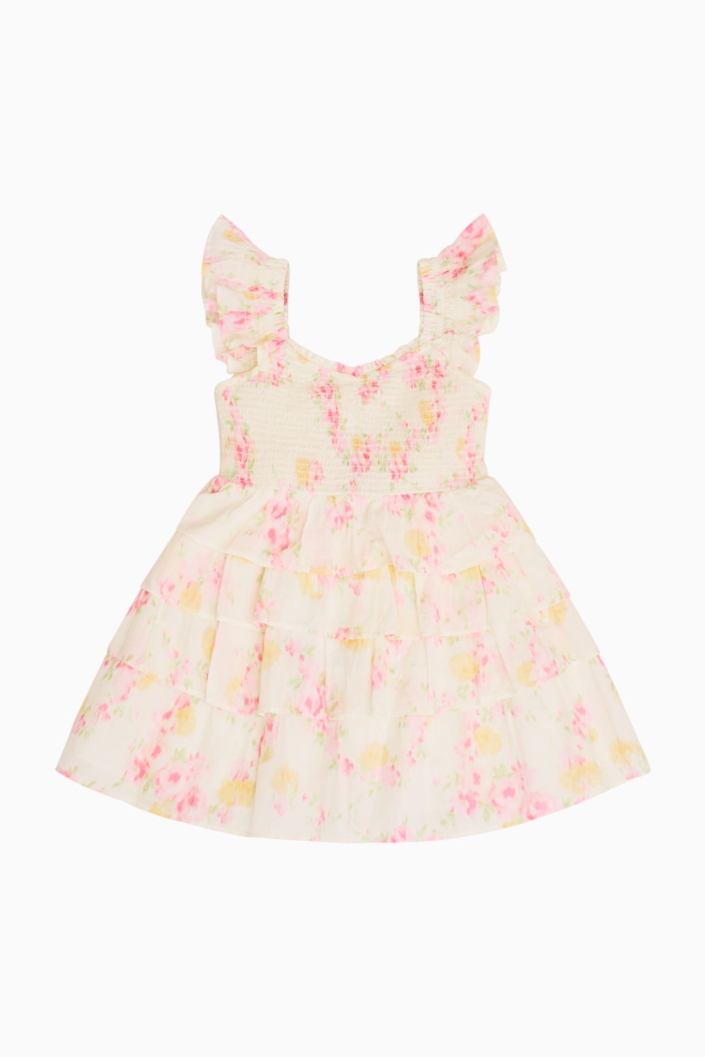Our littles stun in the Linoette Dress. This pretty frock has tiny flutter sleeves and a multi-tiered skirt giving this piece and airy look and feel.