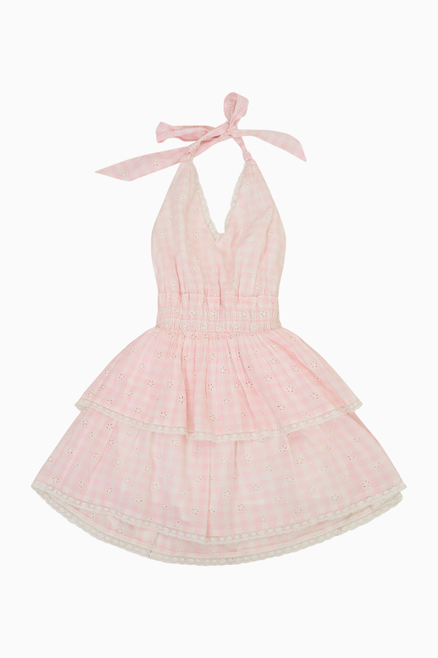 Our best-selling Romille Dress returns with a gingham print on an airy, cotton fabric. This charming dress for our littles stuns with an airy cotton fabric featuring sweet cherry embroidery scallop detailing on the skirt’s ruffle tiers. The dress begins with a V-neckline that falls to an elasticated waistband above a two-tiered mini skirt.