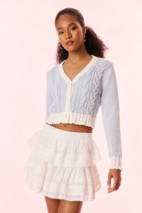 Hyacinth Cropped Cable Knit Cardigan - SUGAR SKY