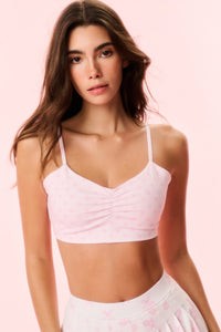 Loving on the Lenna Bra. Designed using our ultra-soft, breathable fabric, this sports bra is designed for low impact movement with removable bust cups, adjustable straps and shirring at the center front bust for a feminine fit.