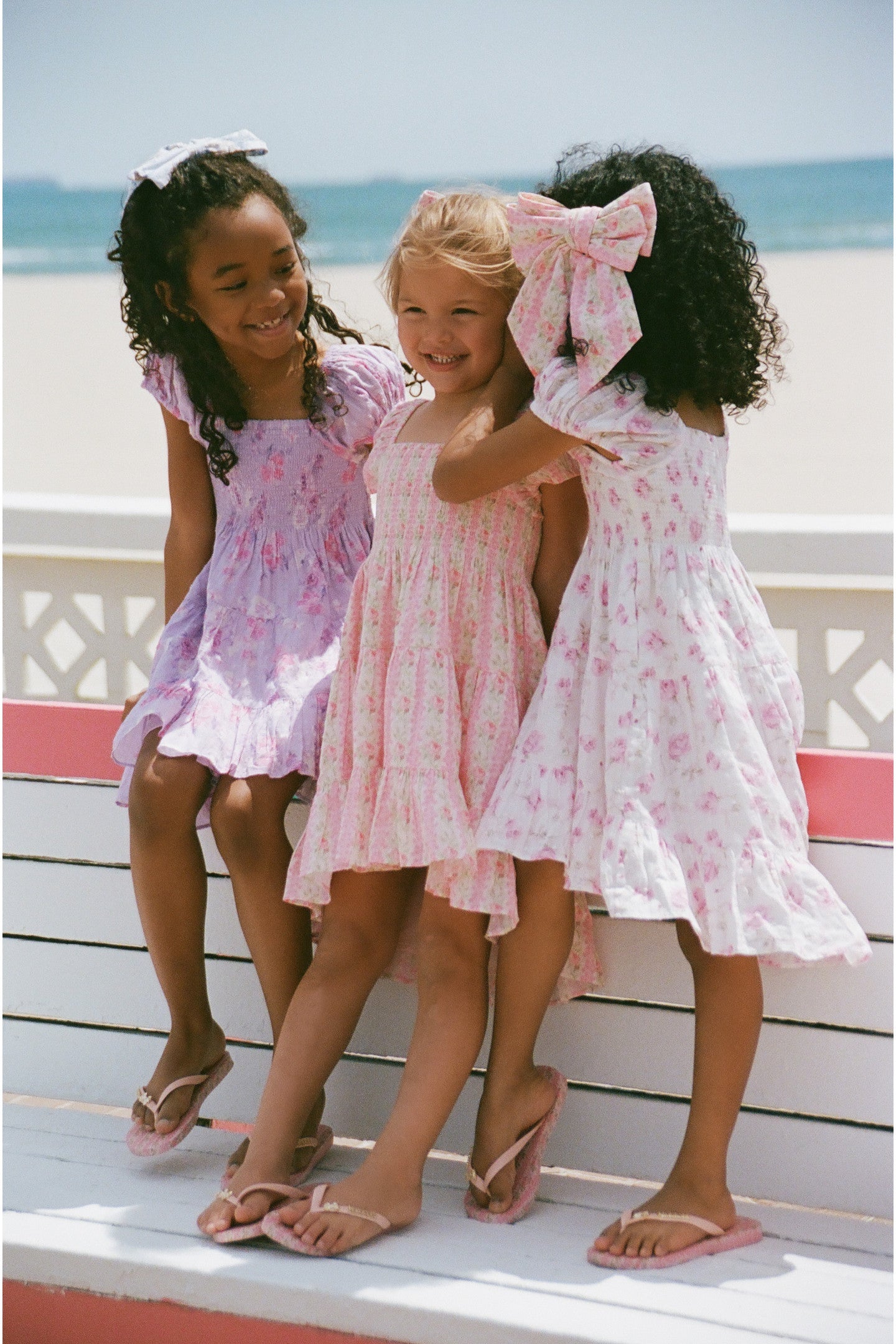 Meet your new summer essential for our little miss sunshines. Introducing our limited-edition flip flops from our havaianas x LoveShackFancy collaboration. The world’s most beloved flip flops get the LoveShackFancy touch with our best-selling floral fragrance prints all over. A signature metallic bow and the havaianas logo adorn the straps completing the exclusive design. With a slim design, meaning thinner straps and soles, this sandal is ultra-comfortable. Each pair comes in a special, vintage-inspired packaging.