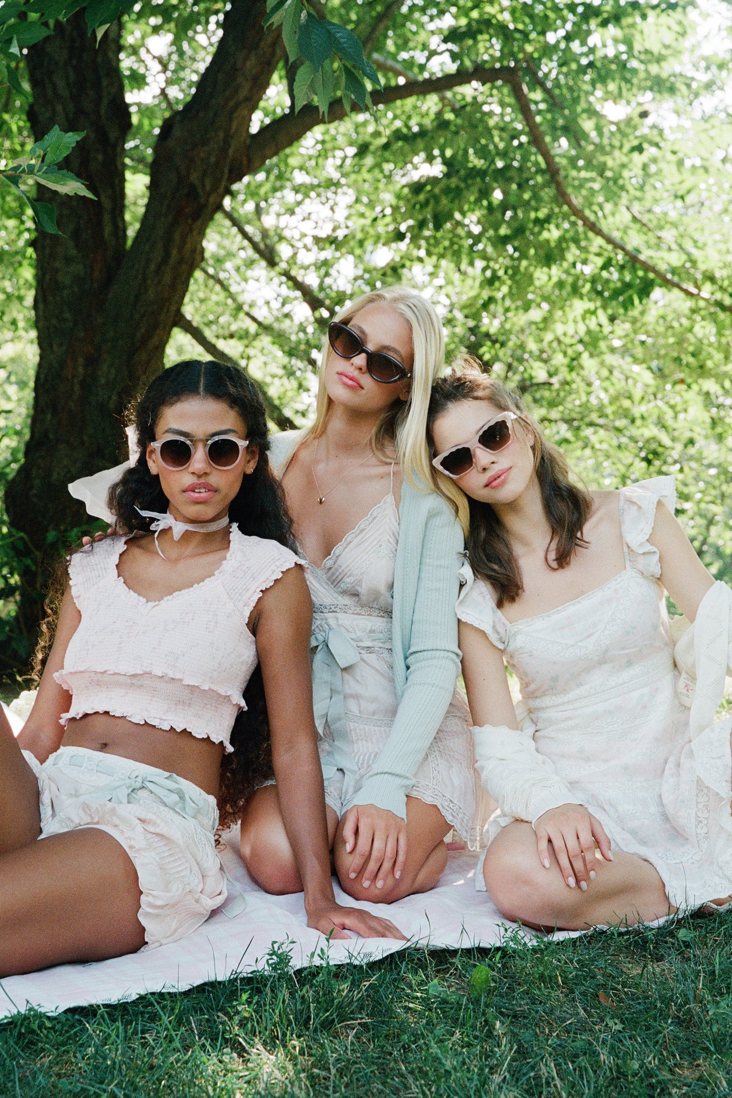 All LoveShackFancy X KREWE frames purchased at full-price through either retailer qualify for KREWE's Second Chances Warranty.