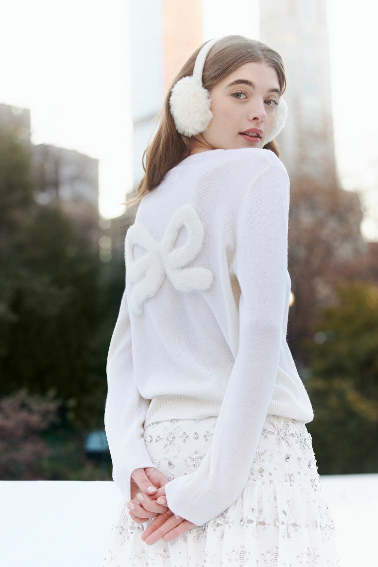 LoveShackFancy x MAX&MOI Piata Faux Fur Bow Sweater