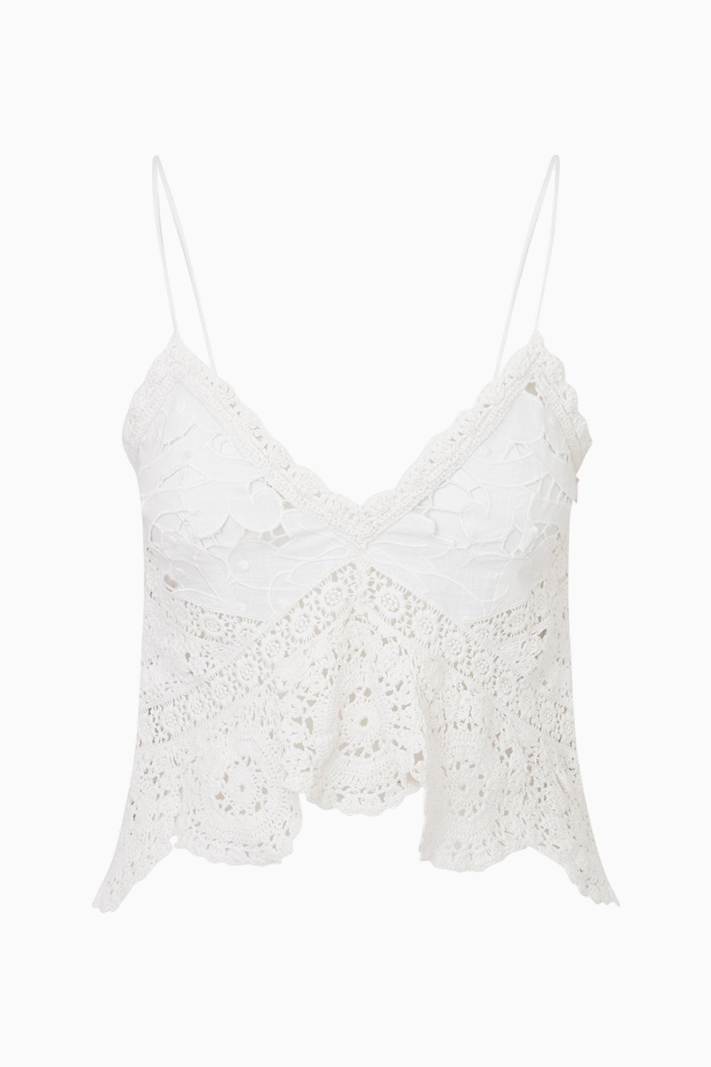 Put on the pretty with the Pellier Top. This Bohemian-inspired cami is designed using a soft cotton slub fabric mixed with a beautiful blend of vintage-inspired laces and crochet. The peplum top features spaghetti straps and crochet flounces at the sleeves. A zipper is included.