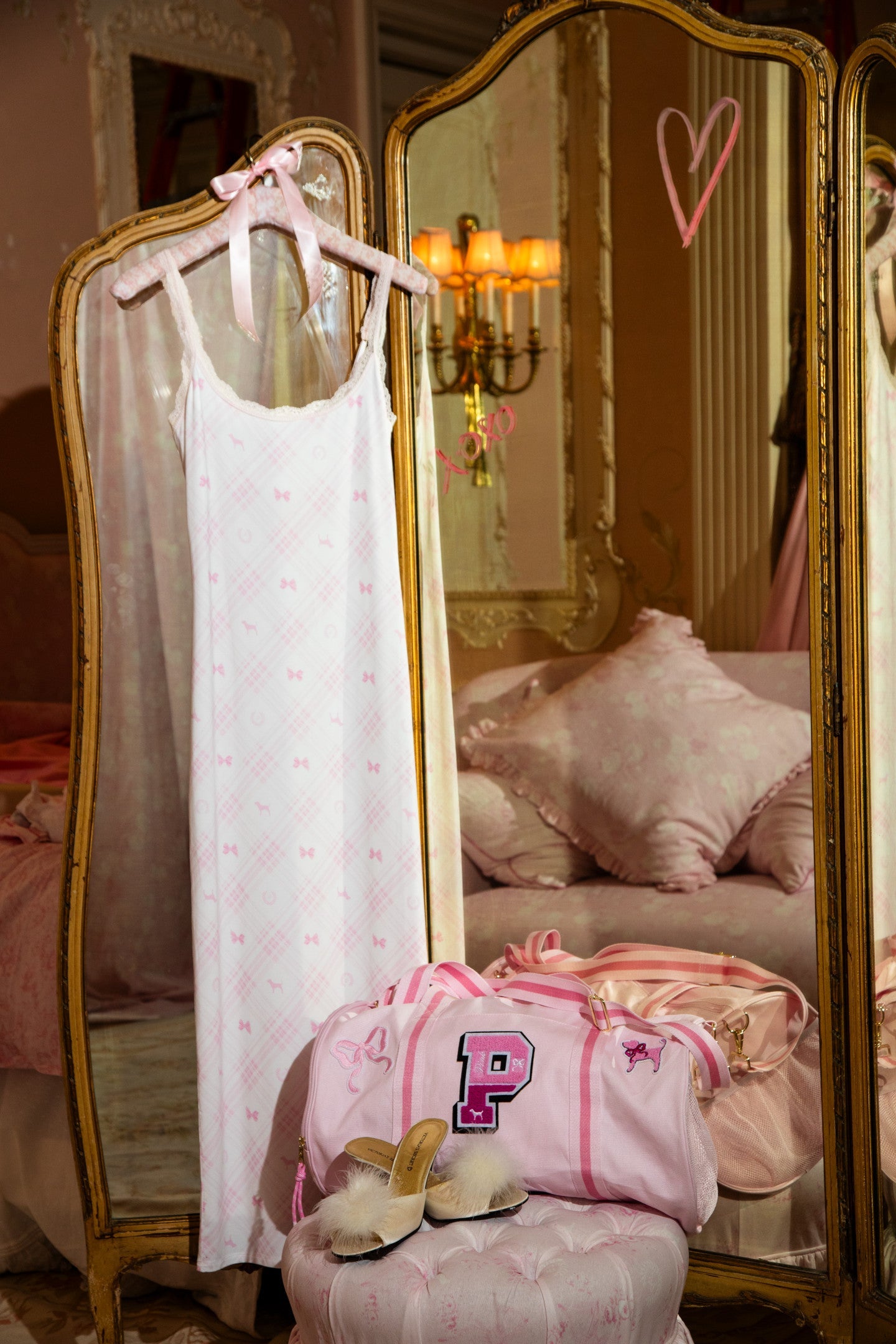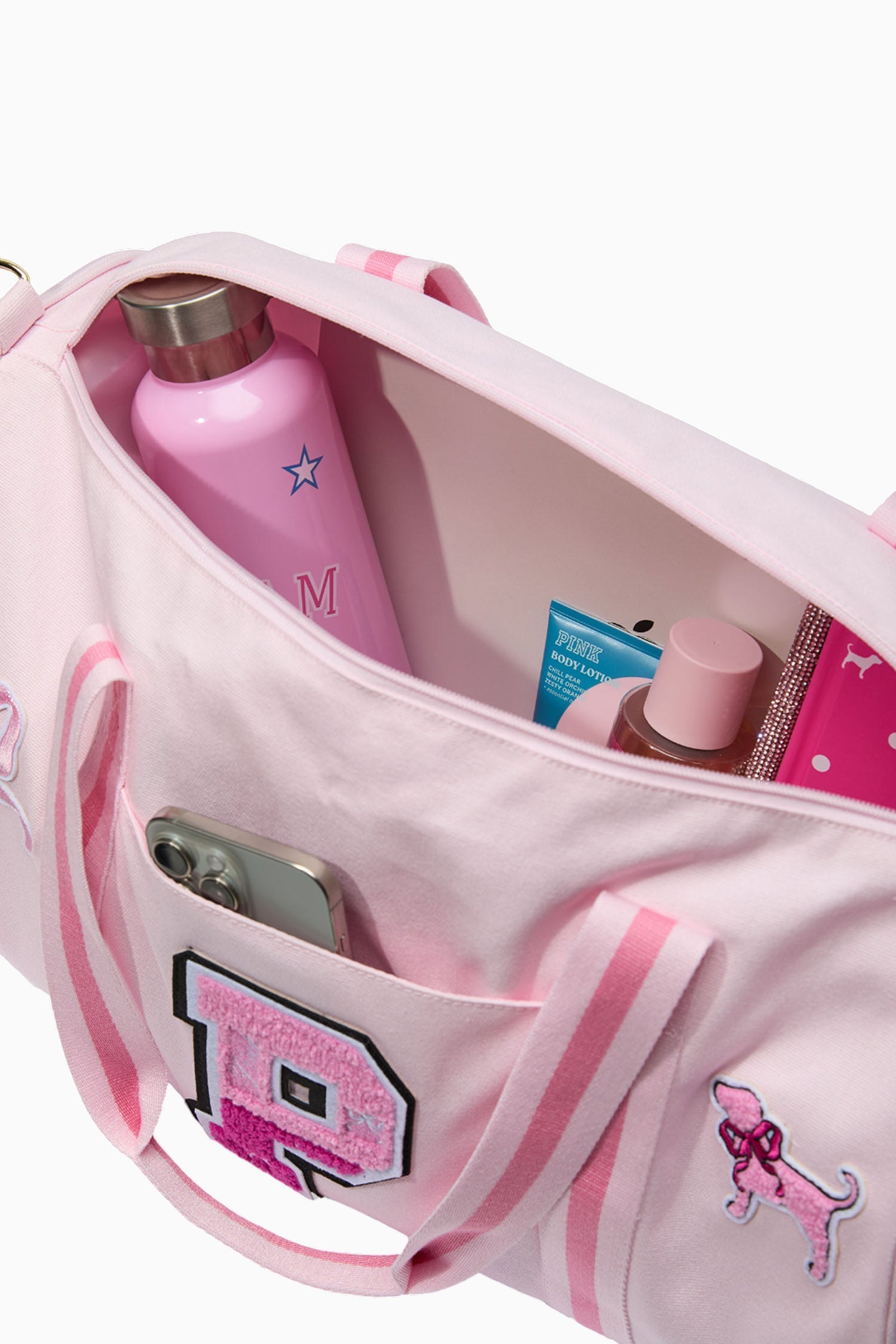 Introducing the Duffle Bag from the exclusive, limited-edition PINK x LoveShackFancy collaboration. This does-it-all Duffle has your pick of pockets, a zip closure to keep everything safe, and two (yes, two!) handles so you've got grab-and-go options. The cutest part though? The LoveShackFancy x PINK-inspired patches on the outside and the “5 rules of pink” stitched to the interior pocket. J'adore.