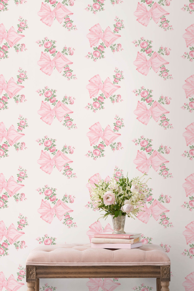 Rosa Beaux in Pink Mint Peel + Stick Wallpaper