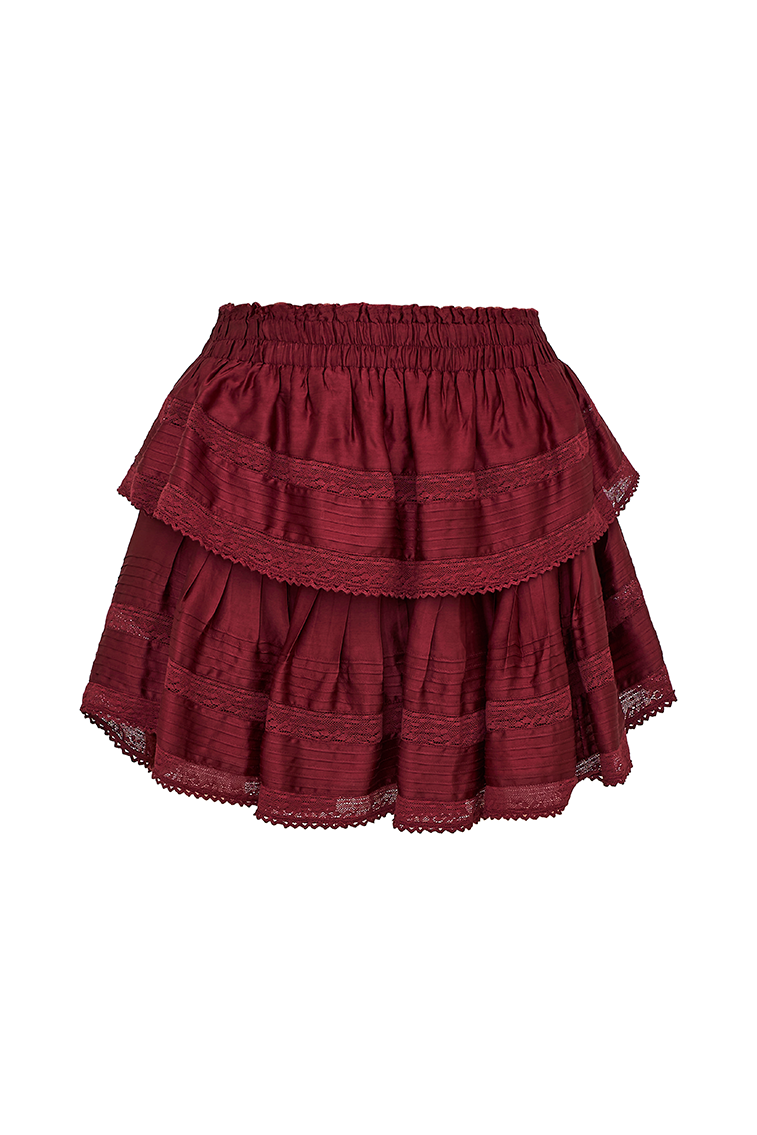 Ruffle Mini Tiered Skirt - OXBLOOD