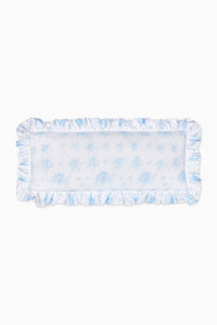 Loving on the Lumbar Pillow. The large, oversized pillow features our signature Pasadena Ikat print in our exclusive, home colorway. This pillow dresses up your bedding with a double layer self and ruffle-adorned edges.