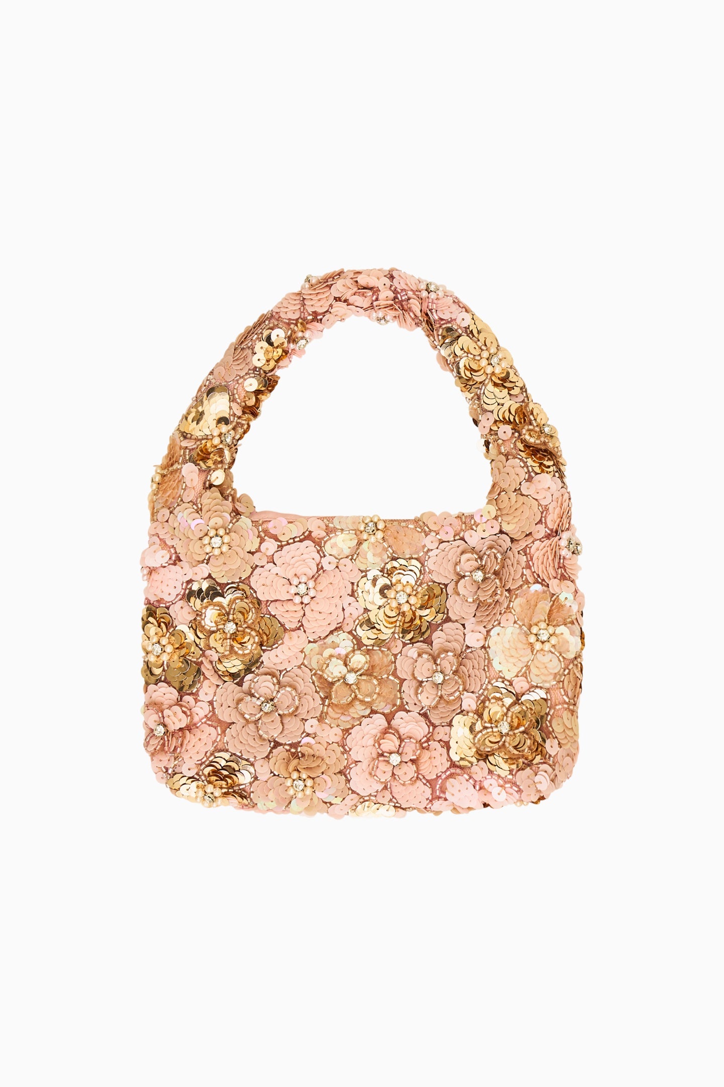 Designed to match our statement-making Aleria and Fleurina dresses, this standout purse stuns with 3D floral appliques featuring iridescent sequins, rhinestones, and more. Add a shimmering touch to any look with this elevated, evening bag.
