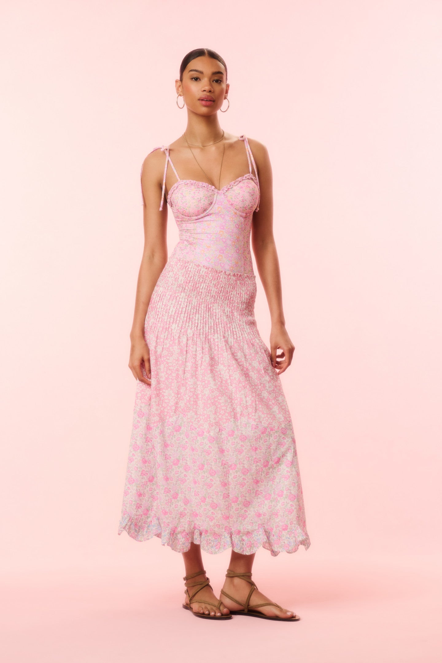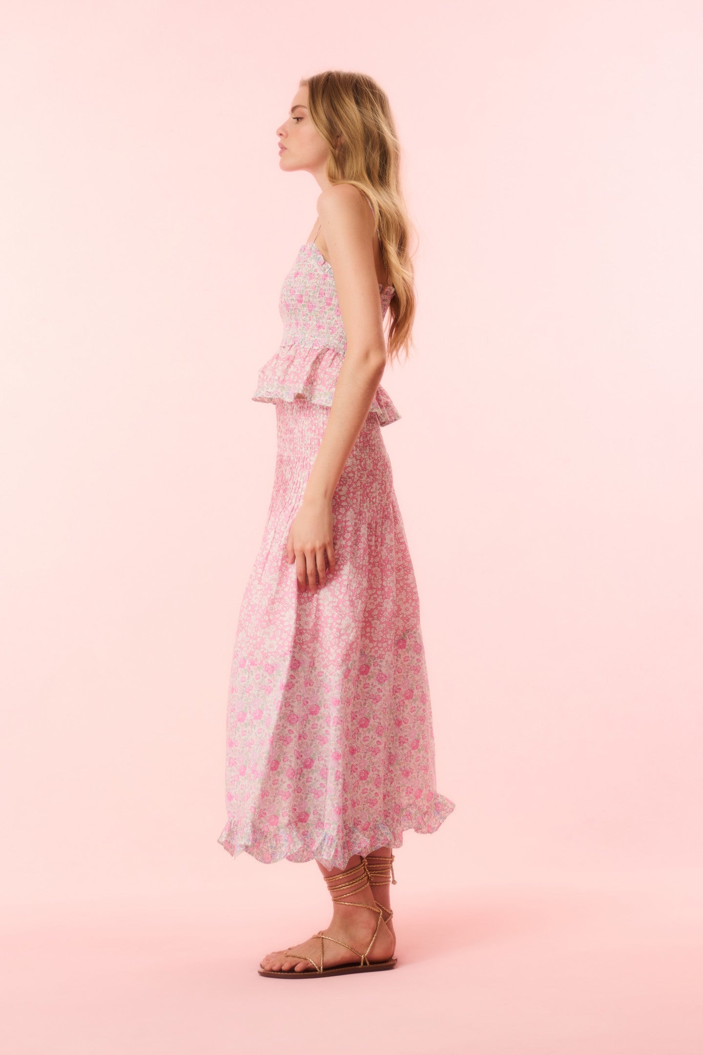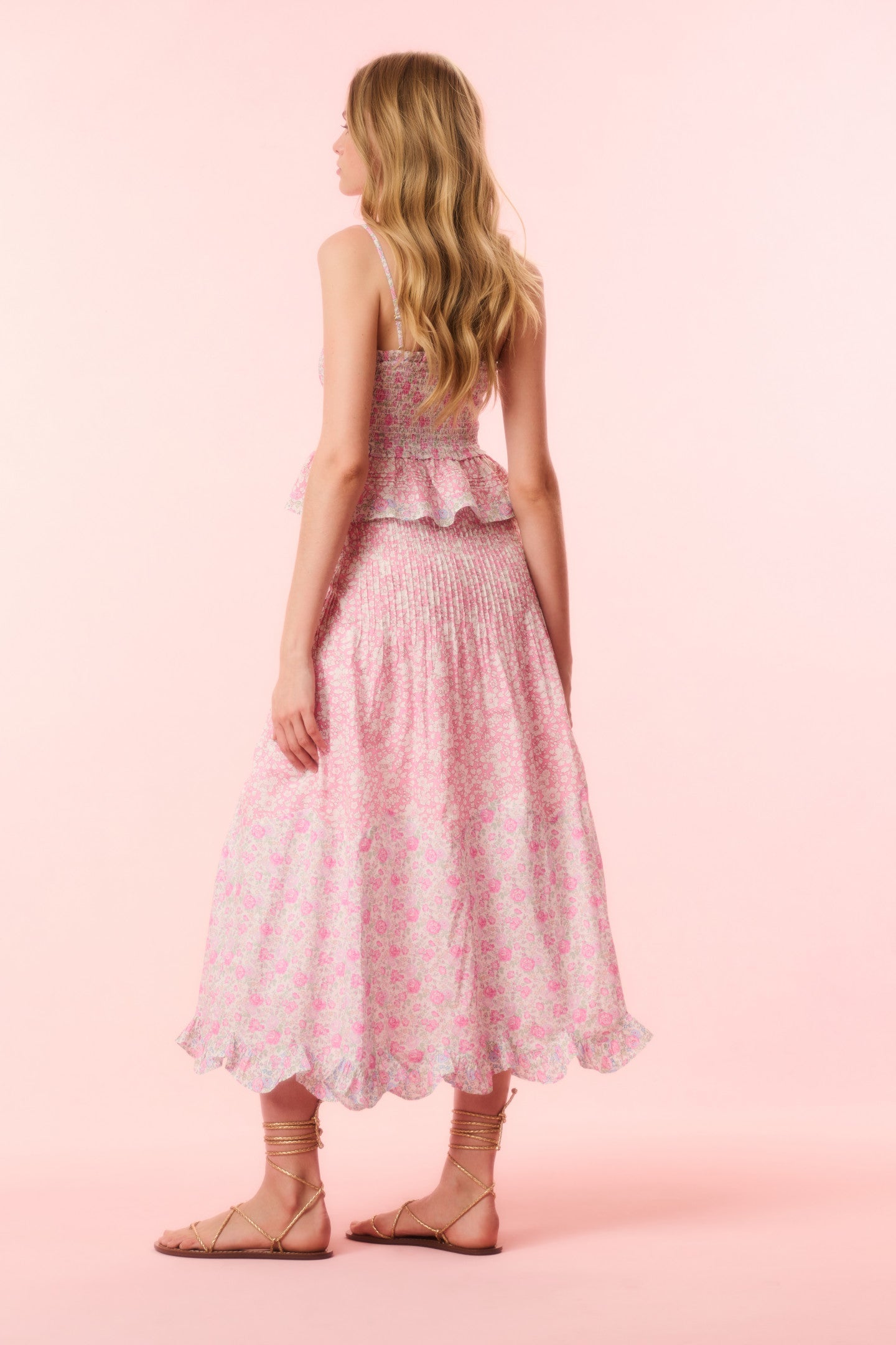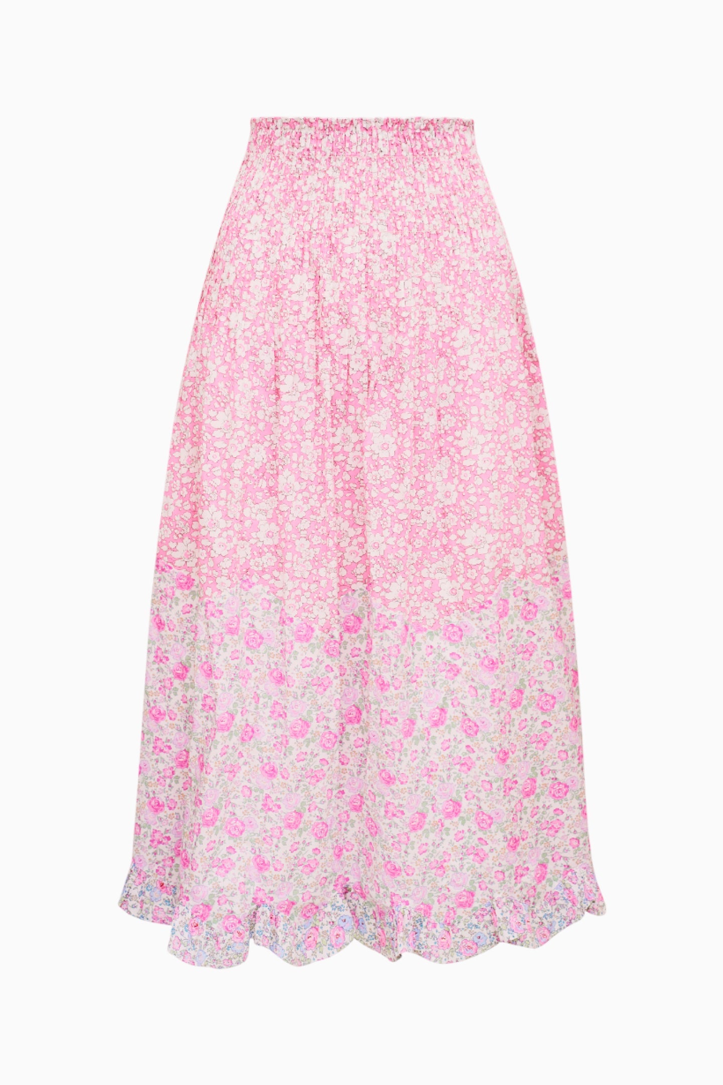 Introducing our latest capsule collection Made with Liberty Fabrics designed into our favorite elevated pieces. The Tian Skirt returns in Liberty's Tana Lawn™ cotton fabric with a two-toned mixed floral print all over. This stunning skirt has vintage-inspired eyelet details all over with tossed floral embroideries for texture and delicate pintucks. The springtime skirt features an elasticated waistband for easy pull on.