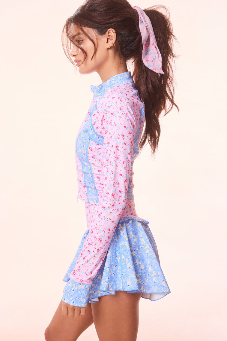 For the girls on-the-go, our Veda Jacket arrives. This athleisure layer elevates your look and is the perfect essential for a cool weather workout or running errands around town. Featuring a ditsy floral print mix paneling and breathable fabric, she’s the jacket that goes with us everywhere.